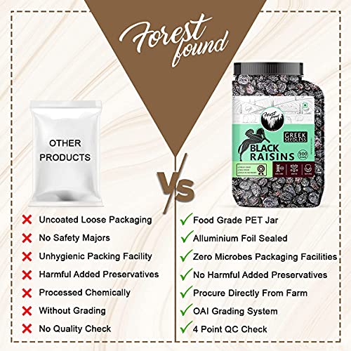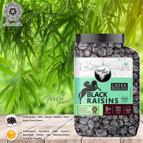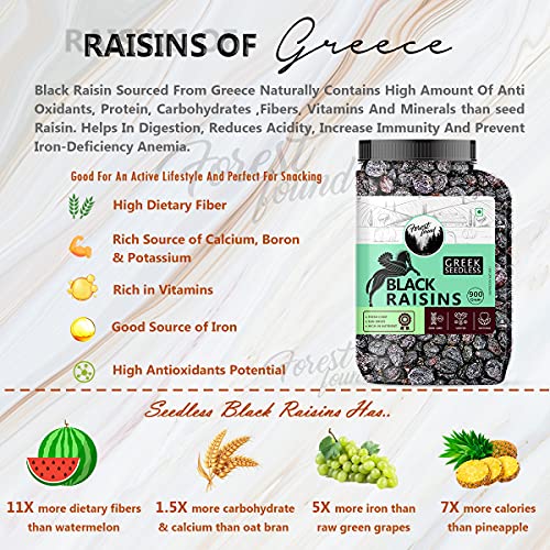 Forest Found Greek Seedless Black Raisins (900 Gm) | Dried Kishmish Without Seeds, Dry Grapes| Kali Kismis Dry Fruits | Kali Darakh