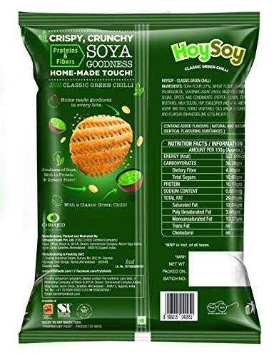 Soybeans are high in protein and a decent source of both carbs and fat. They are a rich source of various vitamins, minerals, and beneficial plant compounds, such as isoflavones. Soya chips are just the perfect “at your office desk” or “party” snacks. High in protein, rich in fiber, iron, zinc, and more, these healthy soya chips can be munched throughout the day in any way, absolutely guilt-free! Consuming them plain is really great But also try chips with dip or salsa (Serving suggestion) to maximize the experience!