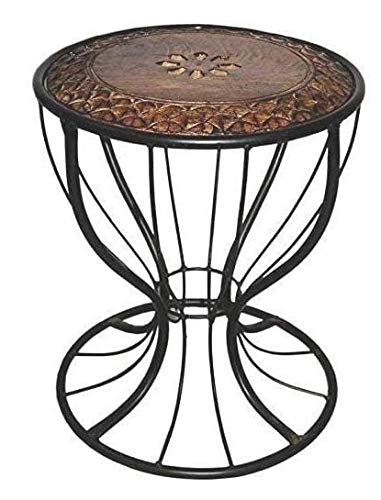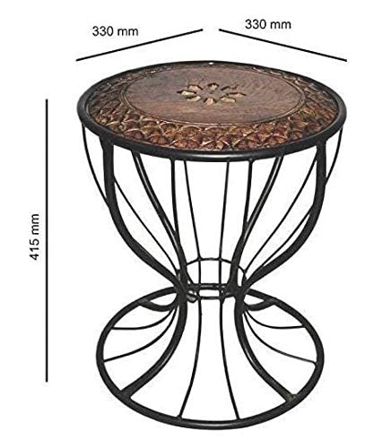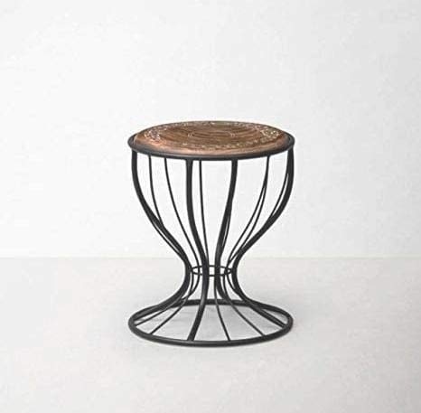 Furniture Hub Beautiful Wooden and Wrought Iron Seating Stool for Living Room and Garden | Seating Stool and Coffee Table