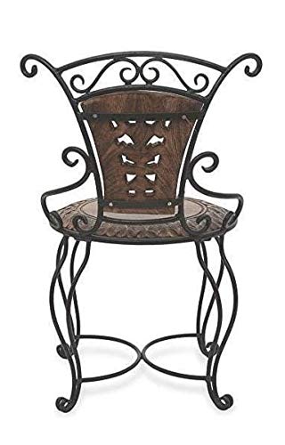 Furniture Hub Wooden and Wrought Iron Chair for Living Room, Outdoor and Garden ( Black And Brown )