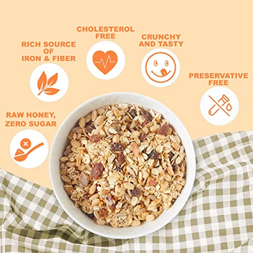 CONTAINS: Added Dry fruits, seeds and nuts with Rolled Oats & Muesli.