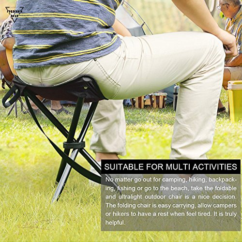 The camping stool adopts quality steel frame which is super lightweight but provide strong support. Besides, the folding camping stool comes with a 3 legged design which keeps sturdy and no wobbling on the beach or outdoor, allowing men and women to have a good rest.