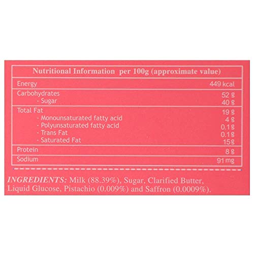 Ingredients:- Milk cake made with thick creamy milk added generously with wholesome pistachios and saffron exceptional ingredients that give our milk cake its unmatched texture and taste for a never-changing one-of-a-kind experience. A delicacy that is even better when shared with your loved and dear ones!