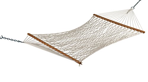 Single Person 48 inches white rope hammock; Wide rope hammock. Made out of 100% UV Resistant white rope which is 7mm thick tightly twisted and high glossy finished hardwood spreader bars. This premium white hammock is a highly comfortable and offers relaxation and comfort at the highest level. This hammock accomodates 1 adult comfortably. The rope is UV resistant and more durable than cotton. The hammock withstands a total weight capacity of nothing less than 250 lbs and can be mounted between 2 trees, poles or on a hammock stand. NO HAMMOCK STAND PROVIDED.
