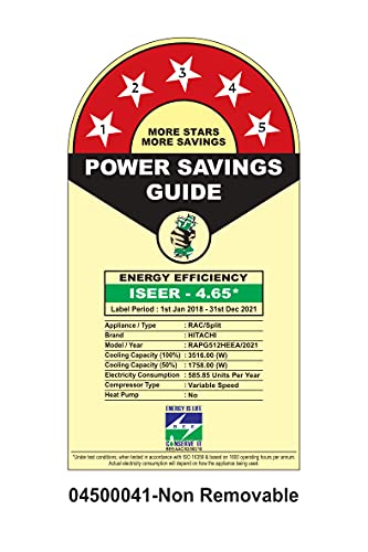 Energy Rating: 5 Star: Best in class efficiency | Annual Energy Consumption (as per energy label): 585.85 units | ISEER Value: 4.65