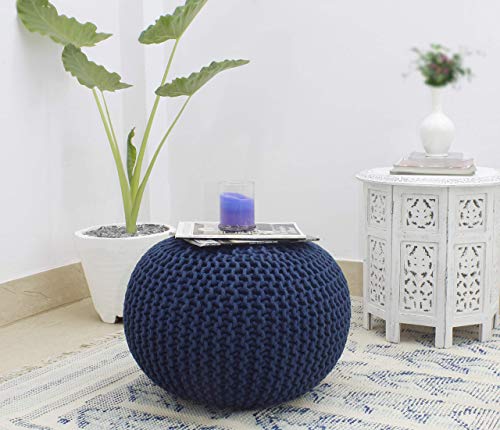 Material : Heavy Dori | Hand Knitted Cable Style Tweed Dori Pouf – Floor Ottoman