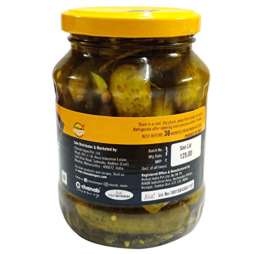 The Hugo Reitzel Gherkins from the family of cucumbers are healthy sides for any food, preserved in herbs pickled in brine & vinegar.This Gherkins brings a fresh and crunchy taste to your kitchen. Country of Origin India.