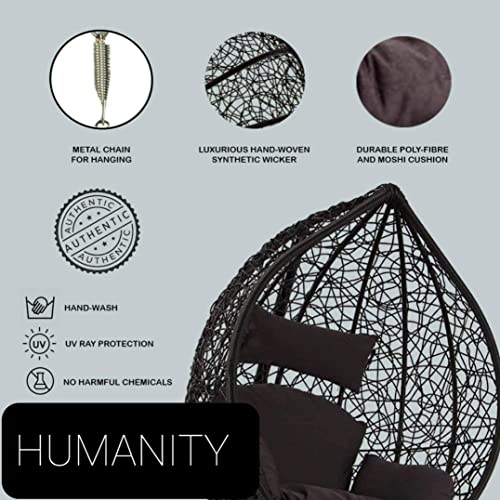 The HUMANITY Swing chair is the perfect spot to catch up on some reading or to watch the sun set. Suitable for a patio, garden or terrace or even indoors. The swing and the cushion fabric are weather-proof, so you can leave it outside and forget it. Made from rattan. Water-resistant cushion included. Cushion material: 100 percent polyester. Recommended load: Max. 120kg. Please ensure that the hook is attached to a stable fixture on the ceiling. We currently do not offer installation services for this product. Ideal for Deck, balcony & more – Unique swinging Chair is the perfect addition to any space outside, like a backyard patio, deck, in a sun-room or garden, or near a pool, or outdoor bar. Premium Fluffy Cushion perfect for you to snuggle in on a warm and sunny day. made from poly nylon, wrapped around a heavy iron frame for weather protection, strength and durability. Designed for one person. , easy to install. Tolerable capacity: 150 kg.