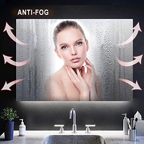 Mirrors play a pivotal role in our daily lives at home. The right mirror helps to express your personality, and brings together the design style of a home. Illuminated LED wall Mirror adds a touch of contemporary style and soft illuminating light to any room. The high-quality LED light has a long lifes, so the bathroom mirror is more durable and provides amazing clarity every time. The on/off touch switch can easily control the brightness and switch three colors: White, Netural and warm lights. An innovative defogger keeps the glass condensation free to keep The mirror is also suitable for in bedrooms, closets, or in allways.Support Wall Switch Control Wall switch can control the mirror light, Defogging technology ensures a clear reflection, you no longer have to wipe mirrors after warm showers. Turn on the defogger before your use. Support Hardwire and Plug-in Easy to install with supplied Mounting kit,No need to modify the circuit design at home, and will not damage the wall. The string lights is IP66 waterproof. The LED lighted bathroom mirrors are controlled by a touch button, not only to on/off the light, but also to adjust the brightness(5%-100%) and light color(cold white). One long touch (>3s) to the button to adjust the brightness, once quick touch cold white. The mirror has memory function, turn on the light and wait (>10s), when touch button to turn off the light and then touch the button again to restart the light, the mirror can remember the last color and brightness and return to the previous state of use. If the power is cut off, the memory function will be cleared