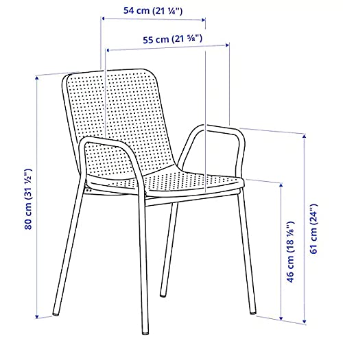 Choose to use it on a small city balcony or a large villa terrace. Durable, maintenance-free materials allow you to get the most out of your outdoor life! The best way to extend the life of your outdoor furniture is by cleaning it regularly and not leaving it outdoors unprotected more than necessary. Clean: With a mild soapy solution. Wipe dry with a clean and dry cloth. Maintenance: Require no maintenance. Storing: If possible, store in a cool dry place indoors. If the furniture is stored outside, cover it with a waterproof cover. After a rain or snowfall, wipe off excess water or snow from flat surfaces. Allow air to circulate to avoid condensation. Can be stacked, which helps you save space. The chair is durable and easy to care for, as it is made of powder-coated steel and plastic. The materials in this outdoor furniture require no maintenance. This chair has been tested for home use and meets the requirements for durability and safety, set forth in the following standards: EN 581.