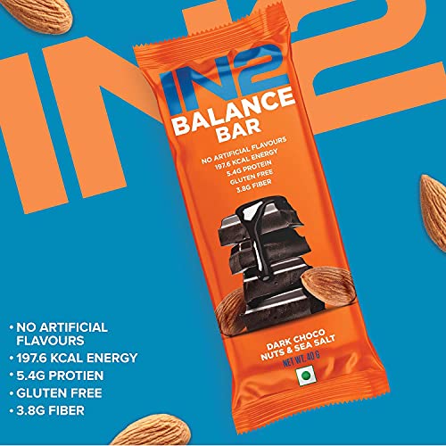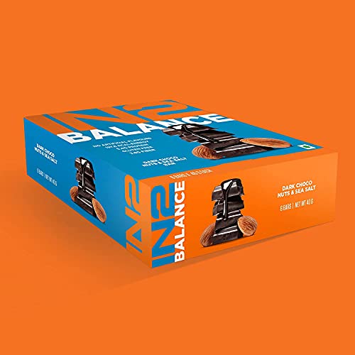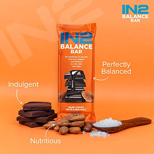 IN2 Balance Bar | Dark Choco, Almonds & Sea Salt| Wholefood High Energy, Fiber, Protein Snack Bar| 6 x40g