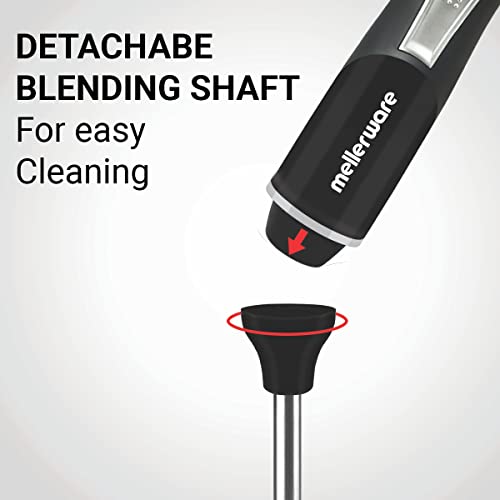 MELLERWARE HAND BLENDER with Powerful Super Silent 600Watt Motor- MWHB 01, Includes Chopper & Whisker|3 in 1 Appliance ( Chop, Whisk Blend)| Stainless Steel Blade & Detachable Stem, (Black/Silver)