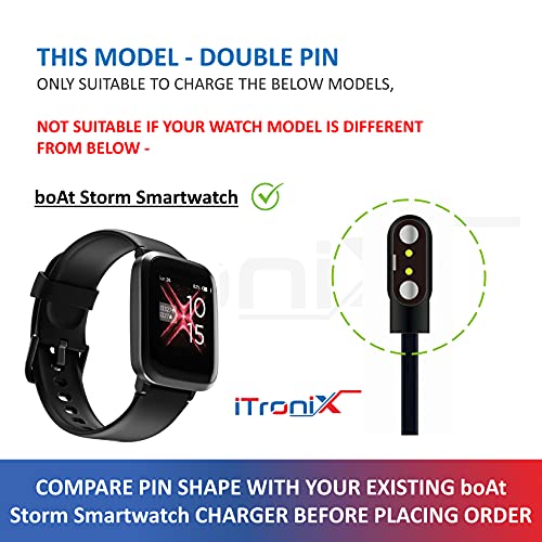 iTronix Replacement charger for boAt Storm Smartwatch (2020). 100% brand new and high quality Fast Charging: The gold-plated joints provide great electrical conductivity and ultra-fast transfer rate.high use frequency, soft line, abrasion- resistance, bend-resistance with long durability. Safe and Practical: Prevent your smart watch from being damaged by overcurrent when Connected to USB Power Source on PC. Easy to Operate: Simply attach the charging cable on the watch and enjoy effortless user experience. The USB cable charging dock also enables you to transfer your activities data between your smart watch and computer. Easy to Carry: Ideal for office, gym locker, or can be stored in your sports bag.