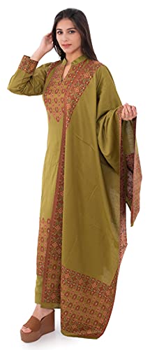 Fabric: Viscose Acro Wool – This unique blend of Viscose and Acro Wool will keep you warm and comfortable. It makes an ideal winter suit for women along with making it stylish and long lasting. It also comes with a shawl/stole for a complete elegant ethnic look