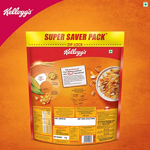 Kellogg’s Corn Flakes with Real Almond is a tasty, nourishing and wholesome breakfast at its very best. The goodness of almond inclusions with real honey can be tasted in every bite. Kellogg’s Corn Flakes cereal is a nourishing and wholesome breakfast at its very best. Naturally Cholesterol Free, High in Iron, Vitamin C, B group Vitamins (B1, B2, B3, B6)