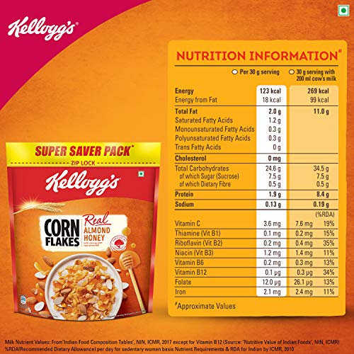 Packed with Nutrients – Now don’t compromise on morning nourishment with Kellogg’s Corn Flakes Real Almond Honey. It is not only yummy but is also High in Iron, Vitamin B1, B2, B3, B6, C and a source of Vitamin B12 and Folate.