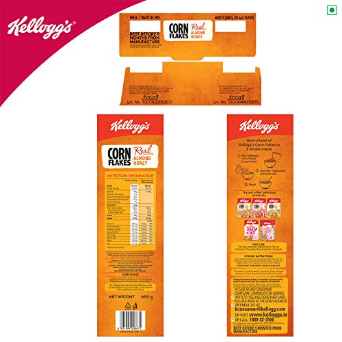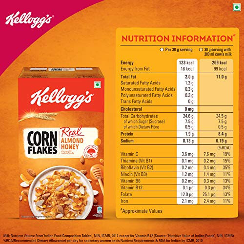 Packed with Nutrients – Now don’t compromise on morning nourishment with Kellogg’s Corn Flakes Real Almond Honey. It is not only yummy but is also High in Iron, Vitamin B1, B2, B3, B6, C and a source of Vitamin B12 and Folate.