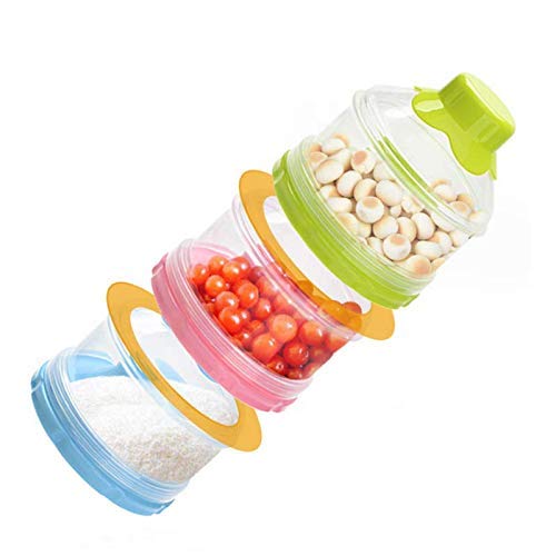 Compact and light weight designed milk powder container for baby is a great product to contain foods while travelling. It also can be used as Snack Cups and Baby foods container. Parents can use spout on the lead to pour milk powder directly in to your baby’s bottle. All three containers are in 3 different colors with transparent storage area which can help parents to view the food left inside. Double layered protection keeps the food more secure. The container is made of high quality plastic material which is durable and convenient for every day usage.