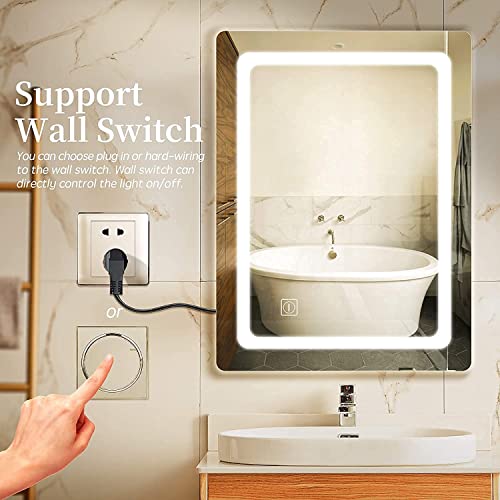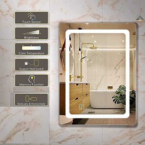 KRIVAZ Glass Mirror Modern Led Light Mirror for Bathroom, Washbasin, Kitchen, Drawing Room Home Makeup Led Light Mirror Touch Sensor[Vertical] 18″ X24″
