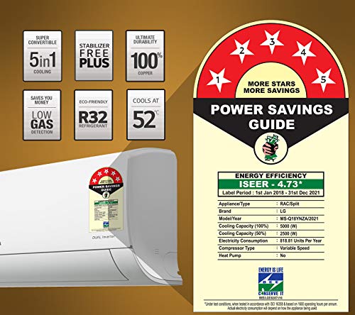 Energy Rating: 5 Star. Annual Energy Consumption: 818.81 Units. Iseer Value: 4.73 (Please Refer Energy Label On Product Page Or Contact Brand For More Details)