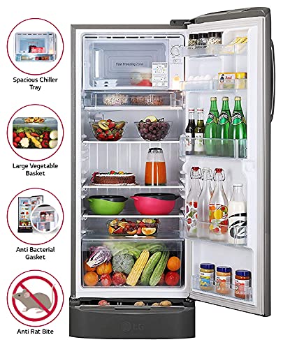 Spl. Features : Moist ‘n’ Fresh is an innovative lattice-patterned box cover which maintains the moisture at the optimal level | anti-bacterial gasket | Fastest Ice Making | Anti rat bite | Vegetable basket with 21 litres capacity | Tray egg | 3+4 Door basket (full size/half size)| Lock | Works without stabilizer: 135v ~ 290v | Humidity Controller | Ice Tray | Base stand with drawer