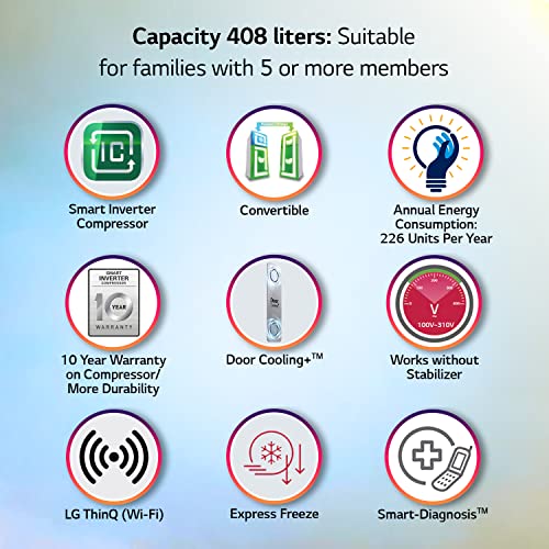 Capacity 408 L: Suitable for families with 5 or more members I freezer capacity: 108L, fresh food capacity: 300L