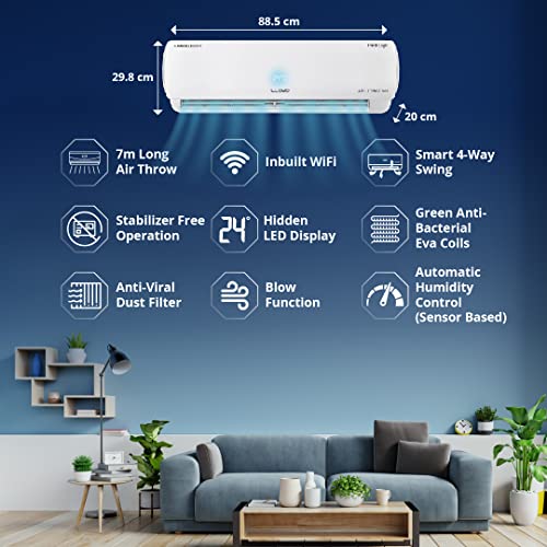 Special Features: Voice & WiFi Enabled, Automatic Humidity Control, Anti-Viral, HEPA & Activated Carbon Filter, Cools even at 52 °C, Turbo Cool, Stabilizer Free Operation, 7 m Long Air Throw, Silver Deco Strips, Smart 4 Way Swing, Golden Fins Condenser