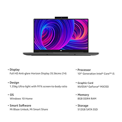 Laptop Display: Horizon Display|14-Inch (1920X 1080 )Full HD Anti-Glare Screen, Nvidia MX350 2GB GDDR5 Graphics