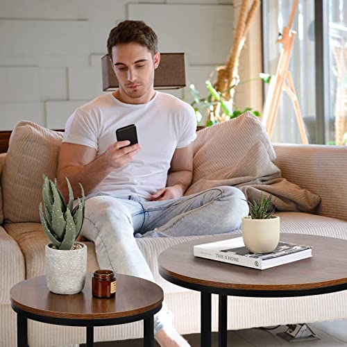 Modern Nesting Coffee Table Set of 2 for Living Room Balcony Office, Round Wood Accent Side Coffee Tables with Sturdy Metal Frame, Easy Assembly(Walnut)