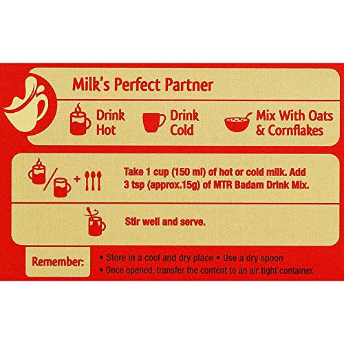MTR Badam Drink is the perfect combination of Badam, Kesar and Elaichi and so delicious that your child will now look forward to drinking milk. Since the ancient times, Badam and Kesar have been well known to possess natural qualities that are good for both body and mind and also help in boosting immunity and strength.