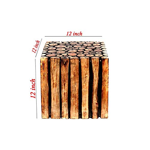Traditional square stool with a unique design. Suitable for Use As Bedside/Lamp/Side Tables/ Study Table / Sitting Purpose/garden stool/planters,outdoor furniture/coffee table/for keeping aquarium/statues/ flower vases/ pots. Made up of wood logs and hollow from inside but sturdy enough to bear weight up to 100 kg