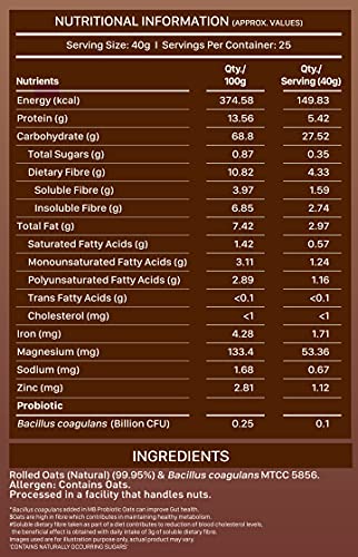 REDUCES CHOLESTEROL: Oats are the wonder grain that is rich in antioxidants and reduces the risk of high blood pressure. MuscleBlaze Probiotic Oats are also low in fats