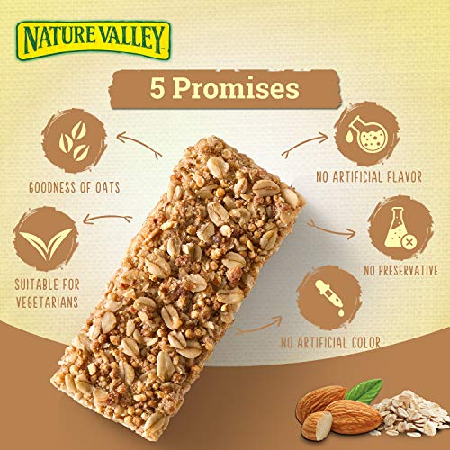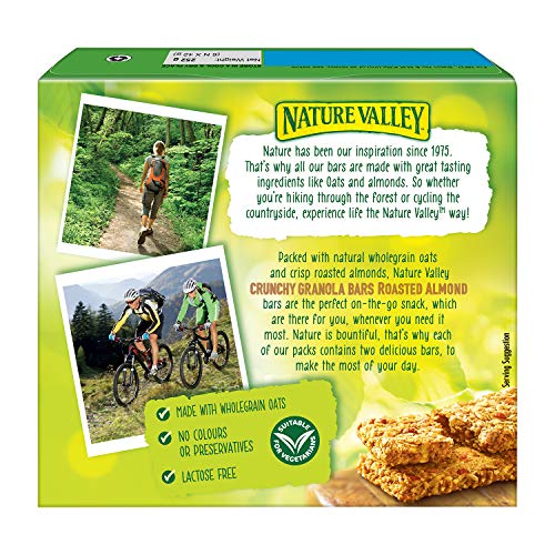 Go – to – Snack Packed with wholegrain oats and with a mouth – watering taste of almonds. Nature Valley CRUNCHY GRANOLA BARS OATS & ROASTED ALMOND are the perfect on – the – go snack, which are there for you, whenever you need it most. The need for convenience makes the pre – portioned, portable, and tasty granola bar a go – to snack.
