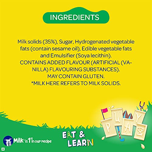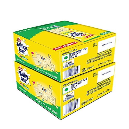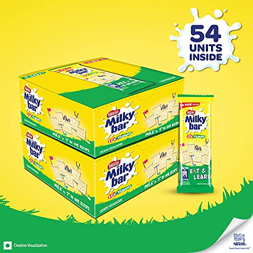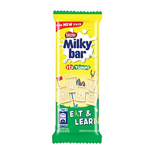 Why milky bar? Nestlé milky bar creamy white treat is the ideal snack for those who love milk, just like us. This one comes with delicious taste for more fun, making it creamier and yummier. It has yummy milky goodness with milk (milk solids) being 1st in our recipe. How is it unique? The great creamy- tasting smooth white treat with it’s milk 1st recipe and the play eat & learn proposition is the perfect ally for moms to help their kids have a wholesome childhood. When can you take a bite? Savouring sweet treats as part of a balanced diet is one of life’s little pleasures and this milky bar makes a perfect treat. Milky bar chocolate is ideal for adding a little more happiness to your Christmas and new year celebrations. So, break your way to mouth- watering milky bar recipes or enjoy milky bar as it is. Gift milky bar chocolates for Christmas or give as new year chocolates, the choice is yours! Good food, good life. Milk refers to milk solids. Storage: store in a cool, dry and hygienic place.