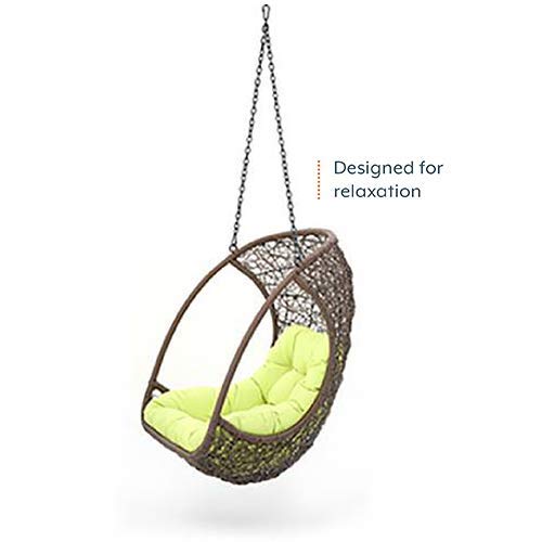 NIRANKAR FURNITURE swing chair is the perfect spot to catch up on some reading or to watch the sun set. Suitable for a patio, garden or terrace, or even indoors. The swing is a weather-proof, so you can leave it outside, and forget it. All metal products, go through an intense 3-step treatment for any termites, borers and pests The Meatal used in the furniture is perfectly seasoned for optimum moisture content, to reduce the possibility of seasonal expansion or contraction of the products. Post manufacturing, each product has gone through a stringent quality checking process in 3-stages, with a checkpoint of over 50 quality aspects. care instructions 1. Always use coasters or mats while keeping hot, cold or wet materials on the surface else this can affect the polish. 2. Any spillage should be wiped dry with a soft cloth immediately as there is a chance of staining. 3. Any cleaning needs to be done with water only From the manufacturer View larger View larger About the Calabah Swing Patio Chair Seat Depth: 28 inches Height: 48.4 inches Width: 30.7 inches Maximum Load: 120 kg Calabah Swing Patio Chair Swing Easy Perfect for the patio, garden, terrace, or even for indoors. The swing and the cushion fabric are weather-proof. Suited to indoor and outdoor settings Water-resistant cushion included Installation – Assembly/installation will be done by seller Your Happy Place The go-to spot to catch up on some reading or to watch the sun set.