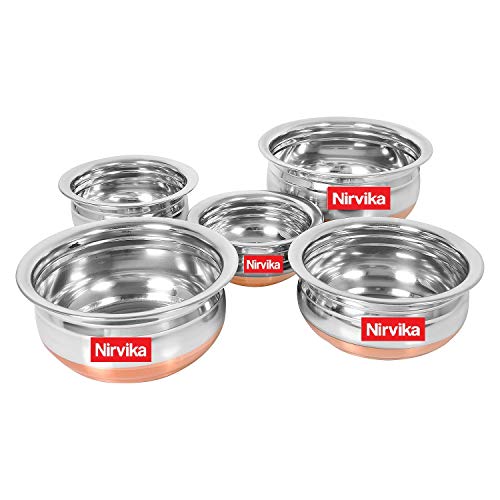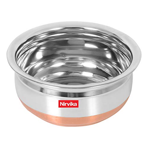 Nirvika Stainless Steel copper Bottom Punjai Handi:- The Handi is made of good quality materials which sure to add to its durability. It is highly stable and can stand strong.