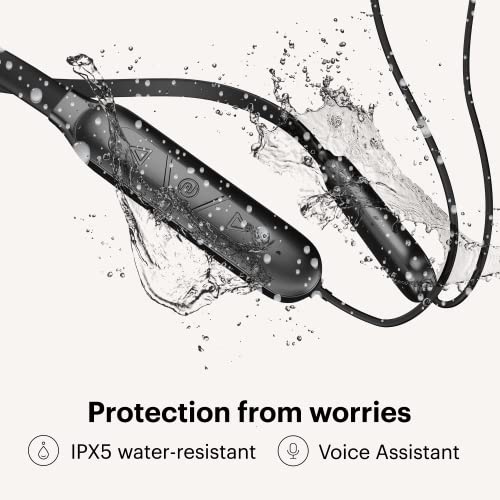 Bluetooth v5.0, IPX5 water-resistant, Voice Assistant, Dual Pairing.
