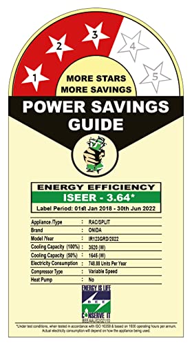 Energy Rating: 3 Star. Best in class efficiency. ISEER Value: 3.64 (Please refer energy label on product page or contact brand for more details)