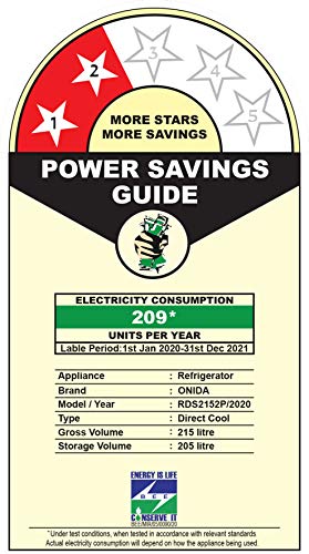 Energy Rating: 2 Star, annual energy consumption: 209 kilowatt hours