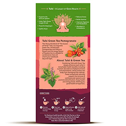 Treat your taste buds to the bright burst of pomegranate, the energetic boost of green tea and the spice of Tulsi. Our special blend is made with delicious pomegranate, sweet hibiscus flowers, tart elderberries and notes of refined citrus. Combined with Tulsi and organic green tea, Tulsi pomegranate green tea creates an antioxidant-rich tonic that increases energy levels and improves digestion, while cooling and refreshing your senses. This tango of flavor and health will make you feel like you’re brewing your own personal fruit orchard, and cultivating a natural medicine chest.
