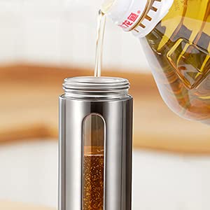 Made of food grade 304 stainless steel and lead-free glass, this oil bottle is well built to last. The pear shaped glass bottle is thick and sturdy, with silicone sealed gasket inside the cap to avoid leakage and spillage, ensure the freshness of liquid stored.