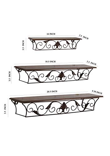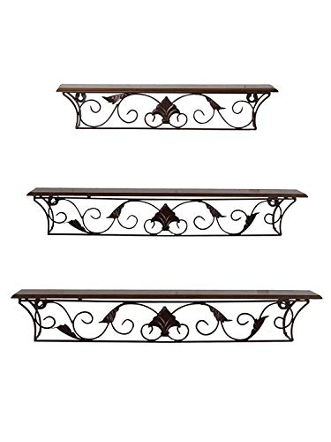 This wall shelves is made from wrought iron and wood. Bring this to your home and add a royal look to your walls size of small shelf 16×2.5×3.5 inches, medium size shelf 20.5×4.5×3.5 inches, big size shelf 18x5x3 inches Easy to fix. No assembly needed. Just drill holes, install a wall plug, and mount with screws.