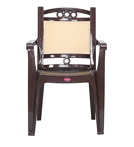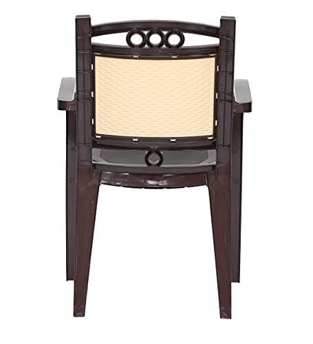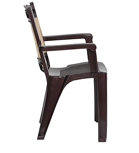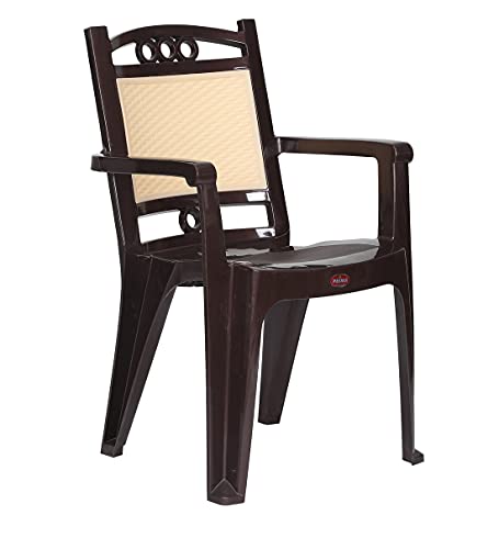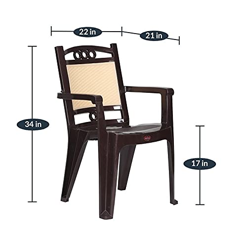 Wide seat with arm rest for comfortable sitting experience, Sturdy Legs: The plastic chair comes with strong legs which ensure its durability