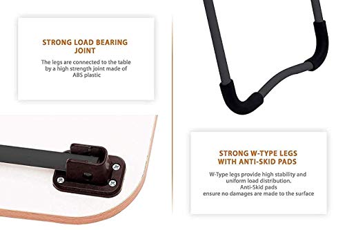 YOYOW (LAPTOP TABLE) ★★★Durable and Sturdy structure ★★★: ★ Made of powder-coated metal tubes and high-quality Engineered Wood top board. ★ This Laptop Table have good compression resistance. ★★★Multi-purpose table/desk: ★★★1. Not only work as a laptop table but also as a TV Dinner Tray, serving table for patients/kids, Standing Desk for office workers, Book Writing Desk for kids, Tablet Holder, Standing Desk/Stand Up table Suitable from 5-year-old child to 80-year-old senior. 2. A smooth surface laptop table can use for surfing the internet, reading book, painting work, enjoy leisure snack time, serving breakfast, enjoy family time on your bed, sofa, couch, floor, lawn etc.. 3. Using it for simple dining table, laptop computer table, studying desk, serving table, or any other scenes you want for reading/writing/drawing/playing board games/models puzzles arts. ★★★Unique design and beautiful finish: ★★★ 1. It features anti-slip legs so that the laptop will not skid while using. No assembly required, foldable frame for easy carry and storage. Simple design make your life more fashion.Fit for 15.6 or even for 17 inches laptop. You can use in the office, bedroom, car etc..