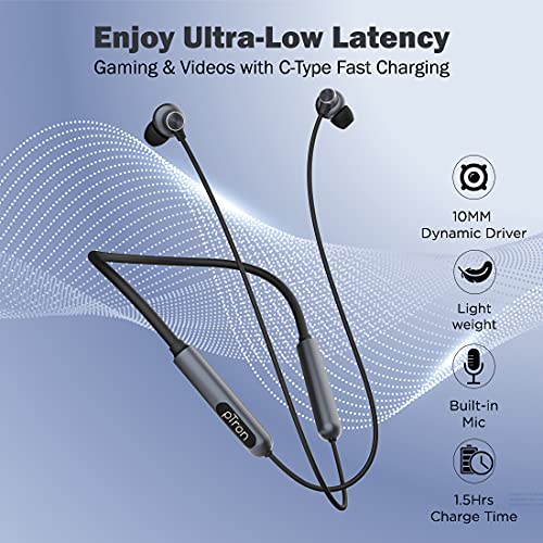 10mm Dynamic Speakers produce Immersive Stereo Sound with Deep Bass; Enjoy Low Latency Gaming/Music; Type-C Port help in Quick Charge the neckband in 1.5 Hrs