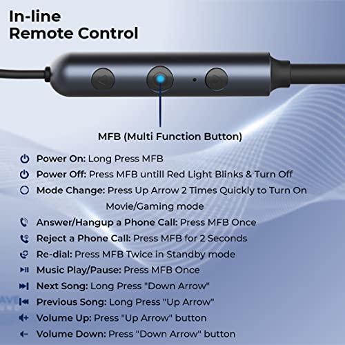 Skin-friendly Material; In-Line Remote Control to Manage Music & Phone Calls Seamlessly; Large 300mAh Rechargeable Battery; Mini Type-C Charging Cable Included & Extra Eartips