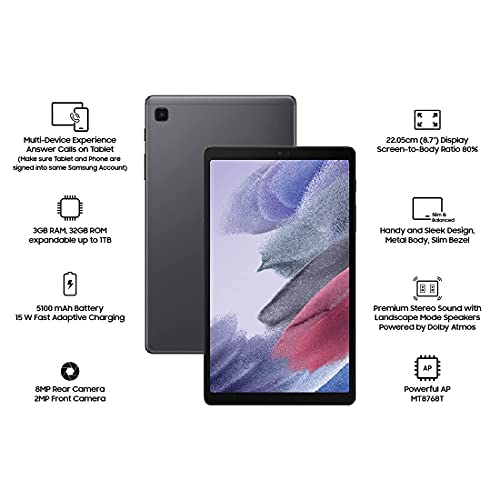 (Renewed) Samsung Galaxy Tab A7 Lite 22.05 cm (8.7 inch), Slim Metal Body, Dolby Atmos Sound, RAM 3 GB, ROM 32 GB Expandable, Wi-Fi-only Tablet, Gray