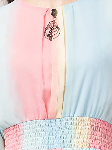 A beautiful spring collection – Retrobella dress for women. An eternal classic cut dress which every young lady MUST HAVE. Printed in fresh colours with adequate vibrancy this dress is good to wear to college , to a movie , to a party or just anywhere. This dress is 47″ long which is knee length for most women. It has a concealed belt on the waist and Neck for you to adjust it on your waist and get that perfect shape. The fabric is a Georgette printed which is machine washable and easy to iron. A bias cut from the waist down makes it flowy and easy to walk around. Very party look makes you look cool and smart. Team it with high heels and a smart purse and you are ready to go. It has an wide boat neck and hence does not need any button opening and will easily slip on like a t-shirt.