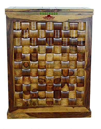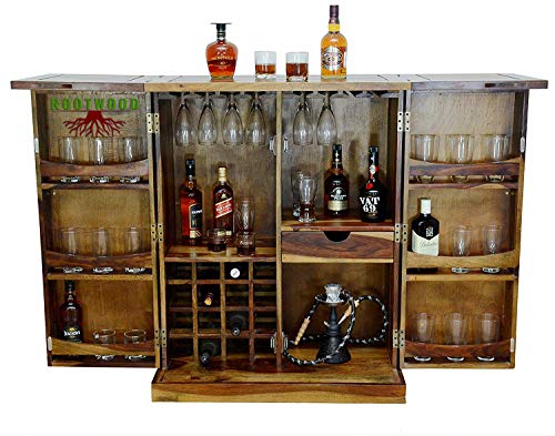 Rootwood Wooden Brown Styllish Bar Cabinet – Natural Brown Finish Wooden bar Cabinet Sheesham Wood Pre-Assemble Bar Cabinet/Rack with Wine Glass Storage (Natural Brown Finish The top of this wine cabinet may be used as a serving station. Display bottles in the front of racks, or keep a small collection with stemware in the enclosed one door compartment.
