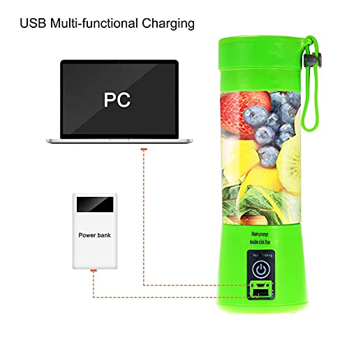 Portable & Compact, Convenient to Charge USB Juicer Blender : Innovative juicer cup, 2 in 1 design, a water bottle and also a juicer, Light weight is easy to Carry to School, Office, Parks, Gym, Yoga, Zumba, Aerobics Sports Coaching classes Camping anywhere you want to and it also convenient for charge by power bank, laptop, computer, car or other usb devices. It has 4-blade 304 stainless steel blade on the bottom of bottle, so that you can make a cup of fresh and delicious juice by yourself. Perfect for travelling, business trip or other outdoor activities use. Product instructions: Please allow the motor to cool for some time between product uses Burning smell during first few usage is normal due to varnish coating on motor and will stop after few usage cycles. Please Read Instructions given before operation Easy and Safe Cleaning – It has have smart safety protection device, magnetic sensing switch ultra safe to use and clean, the juicer cup’s Food Grade PP body and ABS bottom can be separated, you can easy to clean it . Multi-function – Natural tasty juice, milkshake, smoothie and other baby food protein shake, How to Use: 1) Firstly Cut fruits(Only Citrus/ Juicy and please remove hard shell/skin of Fruits/Vegetables) into small approx. 1.5*1.5 cm and Open cap of juicer bottle and fill bottle about 60% with cut pcs. Now just add water or milk or honey About 20% So fill total 80% of the Cup capacity as per your necessity. double press the switch to start, single press to stop, it will auto stir and mix, DIY juice. Turn on juicer bottle and let’s start blend fruit. Allow 1 min to blend to get juice. Now its ready, Just serve it in wine glass and enjoy. Product Detail: Color : Multi (random color will be shipped) Capacity : 380 ml Battery Capacity : 2000 mAh Lithium battery Motor Model : DC 3.6V Charging Time : About 3 Hours Full Charge Working Current:10-12 Amp. Using times : 10-12 times Idle Protection : Turn Off in 5-7 sec